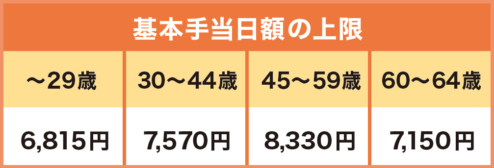 基本手当日額は年齢別に上限額があるので注意しましょう。